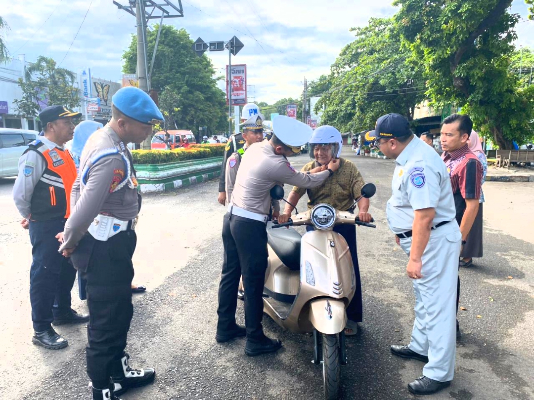 Dalam kegiatan tersebut, Satlantas membagikan helm SNI gratis kepada pengendara dan pembonceng yang belum menggunakan helm. Sebanyak tujuh helm diberikan langsung di lokasi sebagai upaya menekan angka fatalitas kecelakaan. “Helm adalah pelindung utama kepala. Ini bukan sekadar aturan, tapi kebutuhan yang menyelamatkan nyawa,” tegas Kasat Lantas.