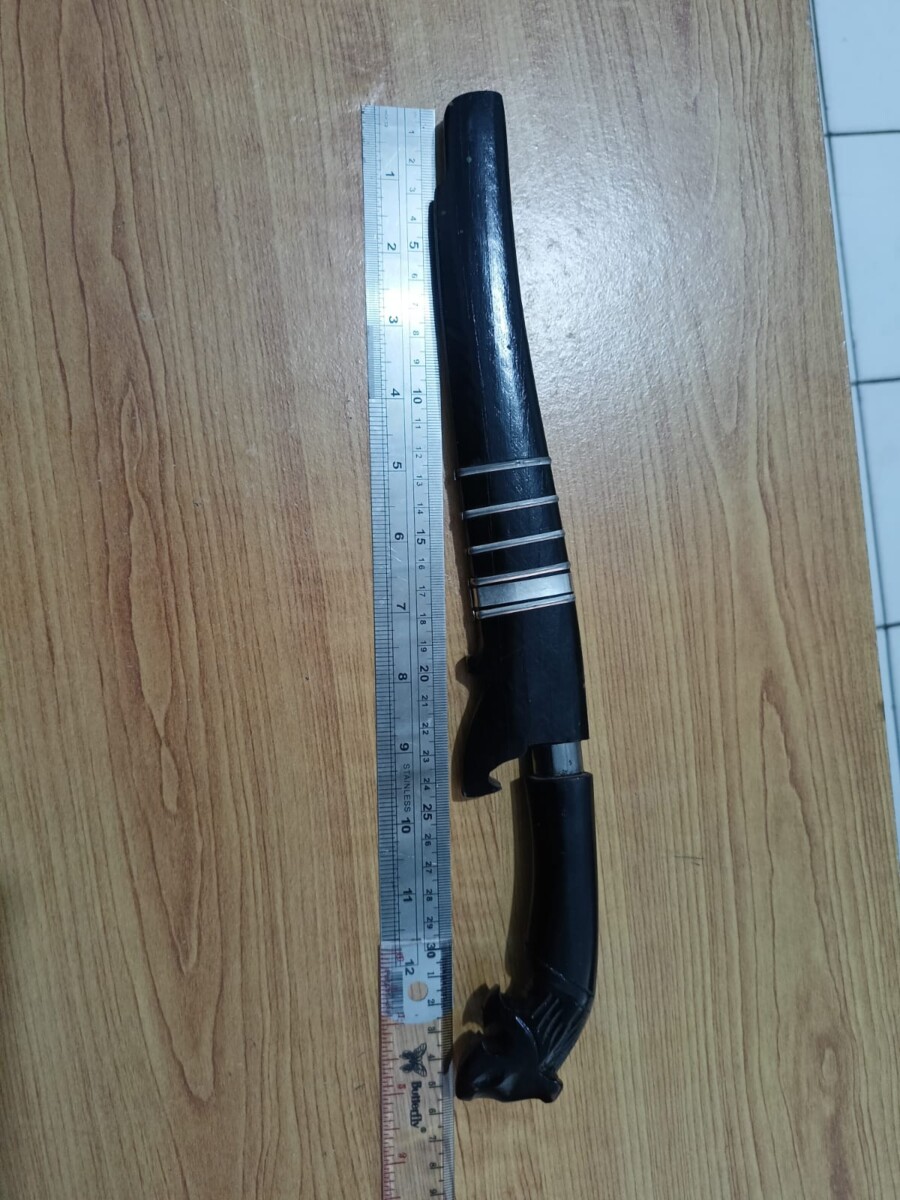 Dari tangan pelaku, polisi mengamankan barang bukti berupa satu bilah badik dengan panjang sekitar 35 cm, pakaian yang digunakan pelaku, serta satu unit sepeda motor Yamaha Mio Sporty yang digunakan saat kejadian.
