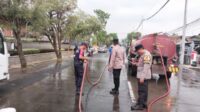 Polisi Gerak Cepat Bersihkan Jalan : Truk Patah Gardan, Solar Tumpah di Jalan Kembangjoyo Pati