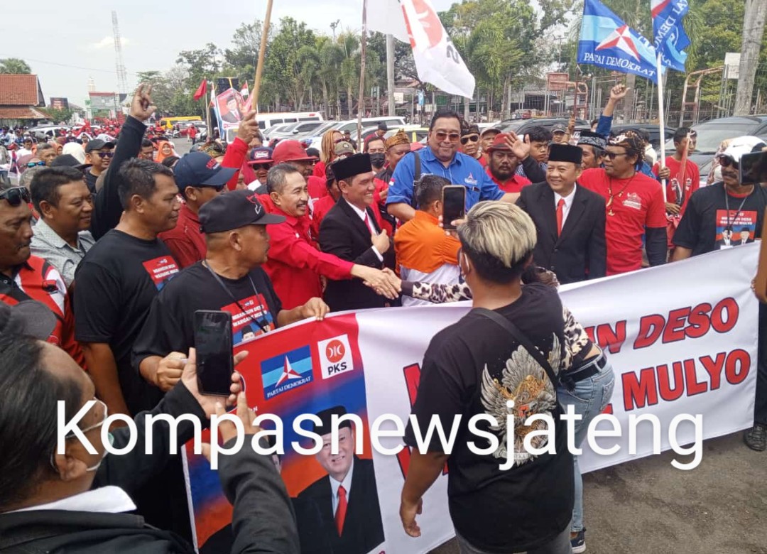 Keduanya diusung oleh tiga partai yakni PDIP, Demokrat, dan Partai Keadilan Sejahtera (PKS). Dengan diiringi ribuan relawan dari berbagai penjuru Pati, keduanya turut dibersamai mantan Bupati Pati Haryanto.