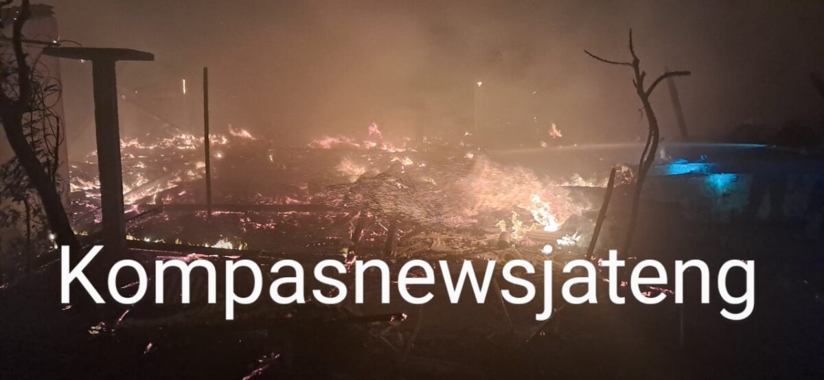 PATI, Kompasnewsjateng.com – Kebakaran hebat terjadi di Dukuh Guyangan, Desa Sidoluhur, Kecamatan Jaken, Kabupaten Pati Jawa Tengah pada Minggu malam (26/8) sekitar pukul 19.10 WIB. Sebanyak lima rumah dan satu mushola hangus terbakar akibat amukan di jago merah. Kelima rumah masing-masing milik Suparman, Jasum, Nur Solikin, Dainuri, dan Rasmito.