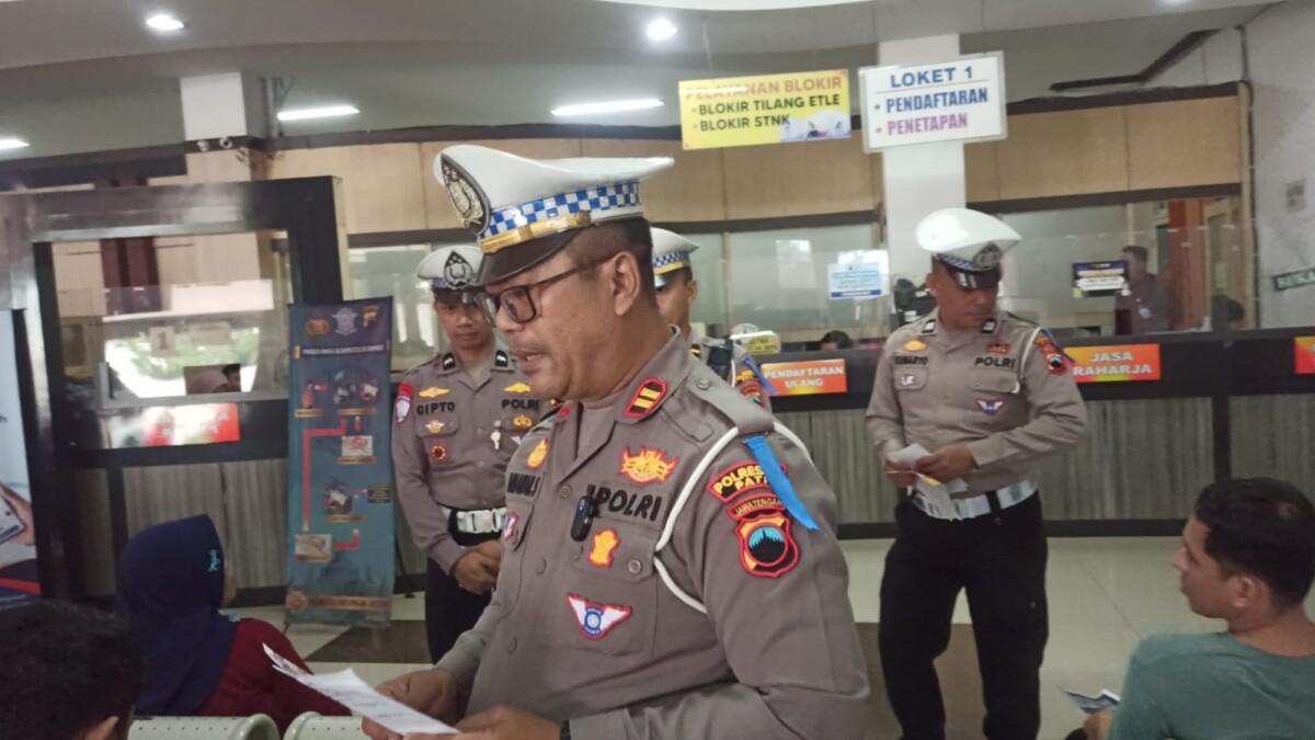 Personel Subsatgas Dikmas yang dipimpin IPTU Gunawan langsung menyampaikan pesan keselamatan kepada wajib pajak. Sosialisasi ini digelar menyusul dimulainya Operasi Zebra yang berlangsung 17–30 November 2025. Warga yang kaget pun langsung mengerumuni petugas untuk mendengar pengarahan.