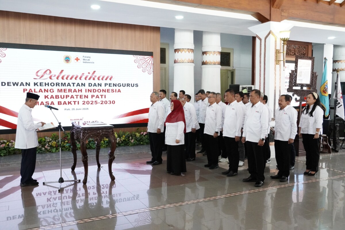 PATI, Kompasnewsjateng.com – Bupati Pati Sudewo, melantik Pengurus Palang Merah Indonesia (PMI) Kabupaten Pati Masa Bhakti 2025–2030 dalam acara yang digelar di Pendopo Kabupaten Pati, Rabu (25/6).