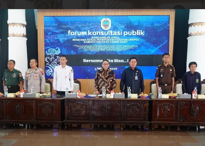 PATI, Kompasnewsjateng.com — Plt. Bupati Pati, Risma Ardhi Chandra, menghadiri Forum Konsultasi Publik Rancangan Awal RKPD Kabupaten Pati Tahun 2027 yang digelar di Pendopo Kabupaten Pati Jawa Tengah pada Rabu (4/2/26). Forum ini menjadi tahapan awal penyusunan RKPD 2027 untuk menyerap masukan pemangku kepentingan sekaligus menyelaraskan arah pembangunan daerah dengan kebijakan nasional dan provinsi.