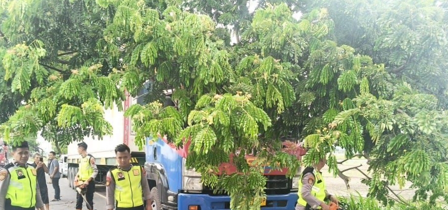 Pati – Kompasnewsjateng .com – Polresta Pati kembali menunjukkan respon cepat dalam penanganan kedaruratan di wilayah hukum Pati. Sebuah pohon trembesi berdiameter 80 centimeter tumbang dan melintang di Jalan Lingkar Selatan Ngantru pada Sabtu siang (6/12/2025) sekitar pukul 13.00 WIB, yang berpotensi menimbulkan kemacetan hingga kecelakaan lalu lintas. Laporan warga yang masuk melalui Call Center 110 langsung ditindaklanjuti oleh PAMAPTA dan personil Polresta Pati tanpa menunggu waktu.