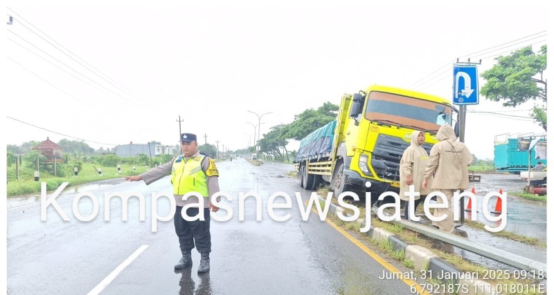 Sekira pukul 09.00 WIB dilaksanakan giat evakuasi truk tronton oleh Polsek Margorejo bersama Dinas Perhubungan Kab Pati sehingga arus lalu lintas arah ke Pati dan arah ke Kudus berjalan normal dan lancar.