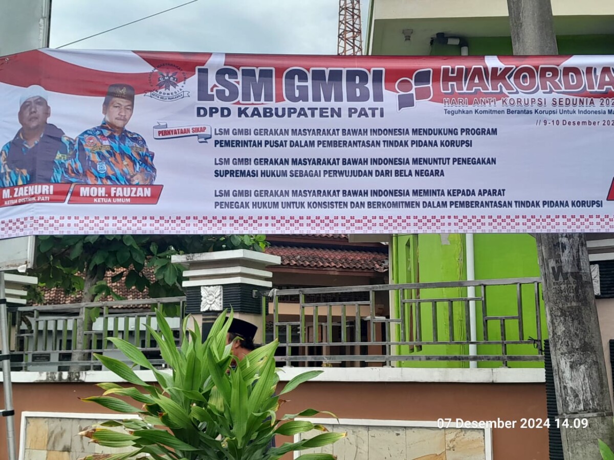 Guna mendukung kegiatan ini DPD LSM GMBI Kabupaten Pati melaksanakan pemasangan spanduk yang bertuliskan pernyataan sikap Harkodia (Hari Anti Korupsi Sedunia) yang dilakukan di instansi pemerintahan dan tempat-tempat keramaian.
