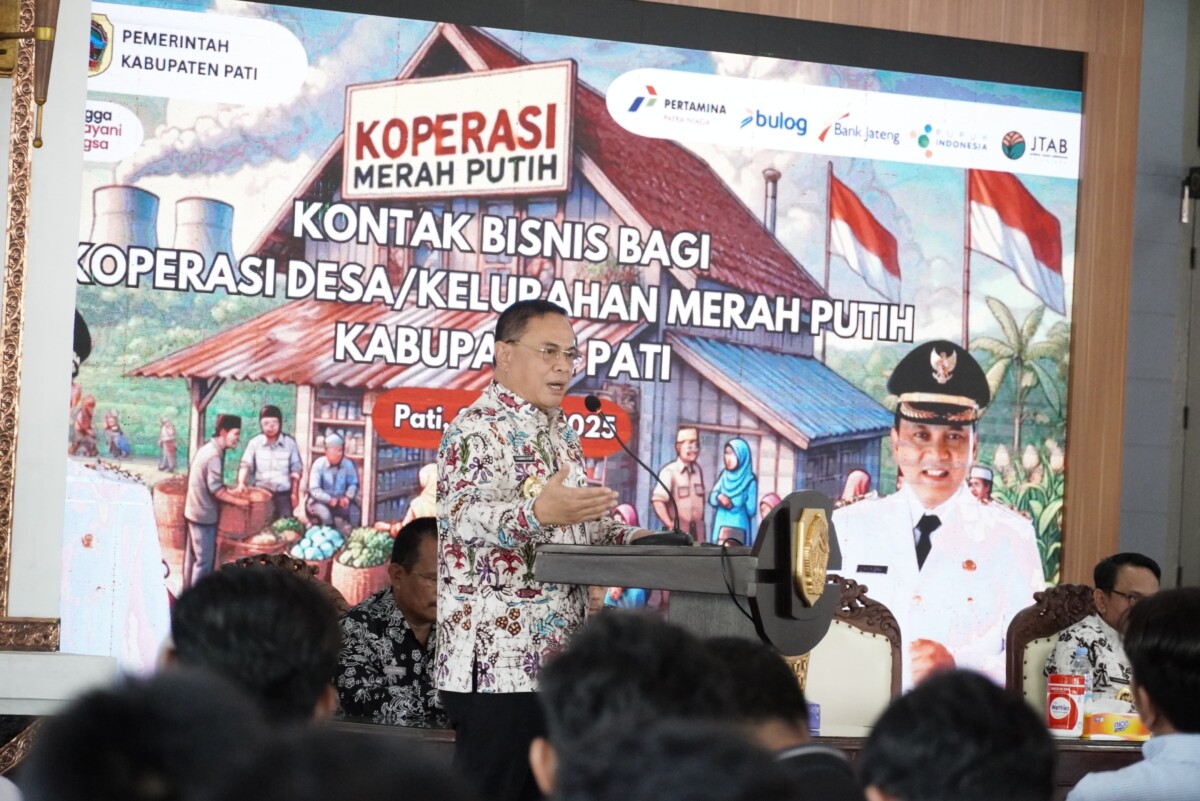 PATI, Kompasnewsjateng.com – Bupati Pati Sudewo, menghadiri Pertemuan Dukungan Kegiatan Kontak Bisnis bagi Koperasi Desa/Kelurahan Merah Putih yang digelar di Pendopo Kabupaten Pati, Selasa (24/6).
